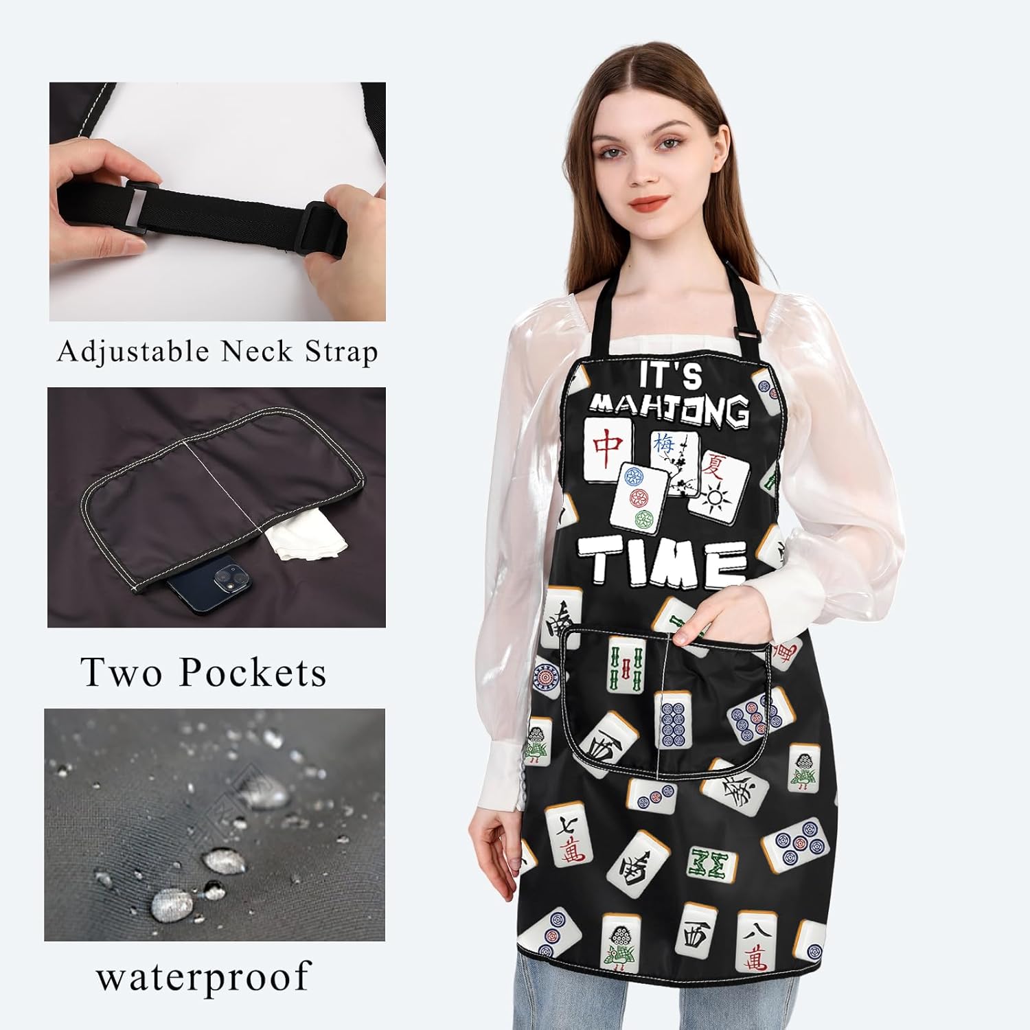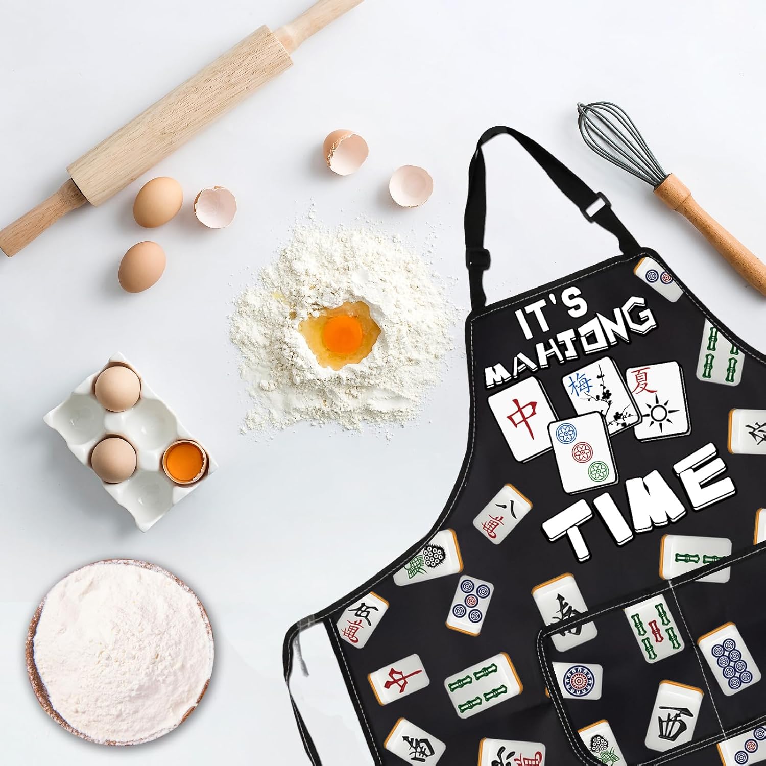 BDPWSS Mahjong Lover Gift Mah Jongg Accessories Mahjong Player Gift It’s Mahjong Time Funny Mahjong Themed Cooking Apron