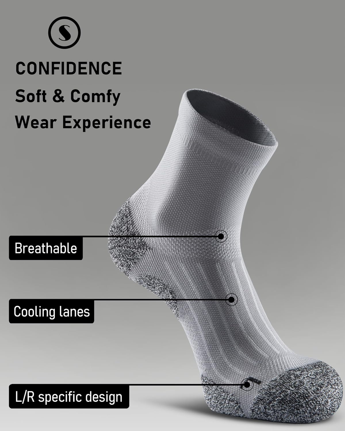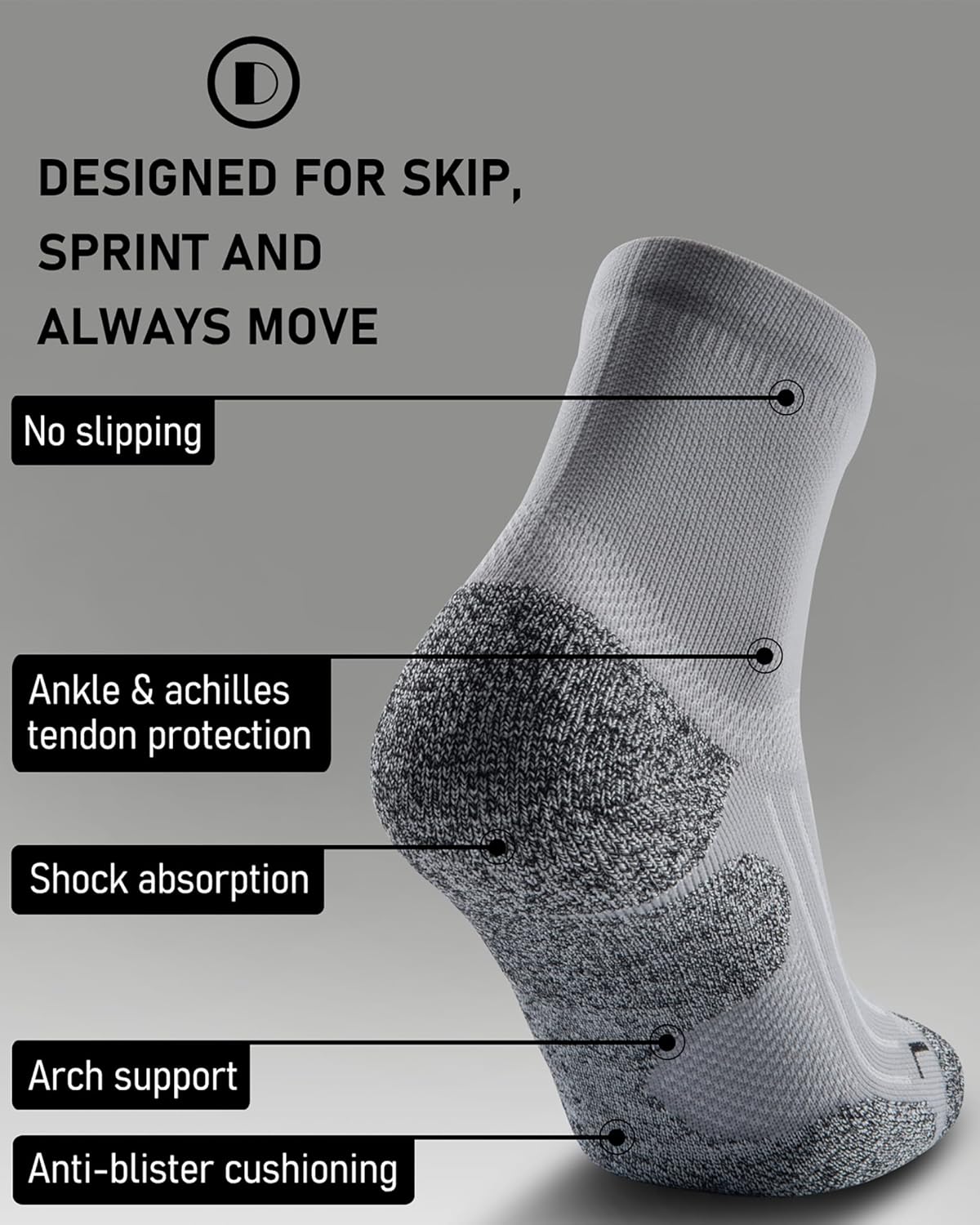 - Preferred Skin-friendly Material: Shock-absorbing cushioned soles made of Oeko-Tex Standard 100 combed cotton and tech-dry yarns for moisture wicking, odor-resistant and durable